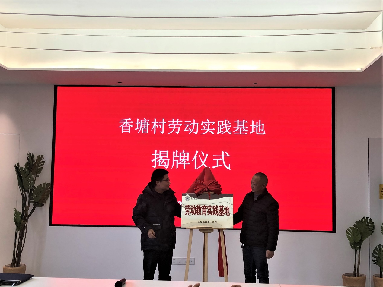 在香堂书局会议室,李志刚与香塘村书记龚志昌进行了劳动实践基地揭牌,校、政双方就如何建设劳动基地、开展农文旅合作进行了交流研讨。顾烨婷等人就香塘村目前发展现状做了总体介绍,并指出香塘村目前发展面临的问题:缺少人力、信息化不足、旅游规划有待优化、缺乏员工培训等。李志刚和周丽雅等人分别介绍了学院特色、专业分布,表达合作意向,对如何开展劳动基地、实训基地建设进行讨论,希望双方进一步丰富合作内容,拓展合作领域,以服务地方产业,实现互利共赢。曹静就未来双方在劳动基地、实习实训、学生就业三大方向再次表示了合作意向。