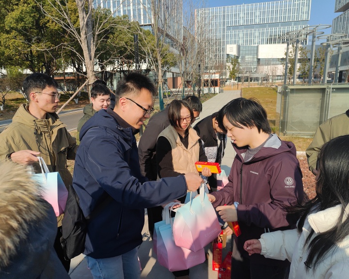 清晨的校园暖意融融,学院特意准备了“糕粽”主题早餐。辅导员们将早餐打包成便携礼盒,递到每一位考生手中,“吃了这份‘高中’,我们一‘研’为定!” 让学子们感受到学院沉甸甸的关怀。