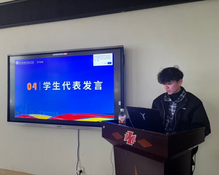 项目班学生代表王国铭,在会上分享了近期学习生活的收获与感悟,展现了双元制培养模式下的成长与蜕变。
