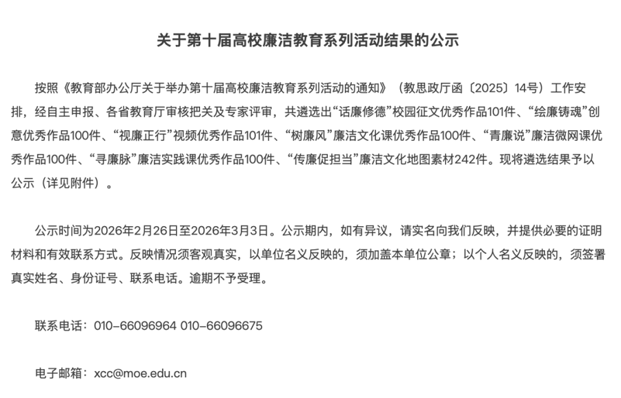 近日,教育部公示第十届高校廉洁教育系列活动结果,我院2件优秀作品入选。这是我院深化新时代高校廉洁文化建设,持续打响“清廉健雄”品牌结出的又一硕果,也是以廉洁文化涵养校园清风正气的生动写照。