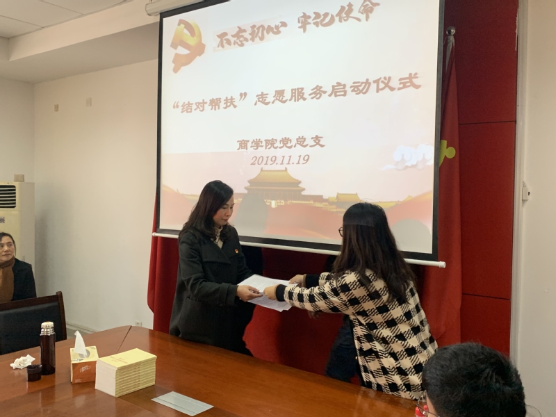 为贯彻落实“不忘初心、牢记使命”主题教育活动,引导广大党员教师从小事做起、从身边事做起,用实际行动践行“初心”和“使命”,商学院党总支组织开展了针对玉屏籍少数民族学生的“结对帮扶”志愿服务活动。活动启动仪式于11月19日下午在商学院会议室举行。