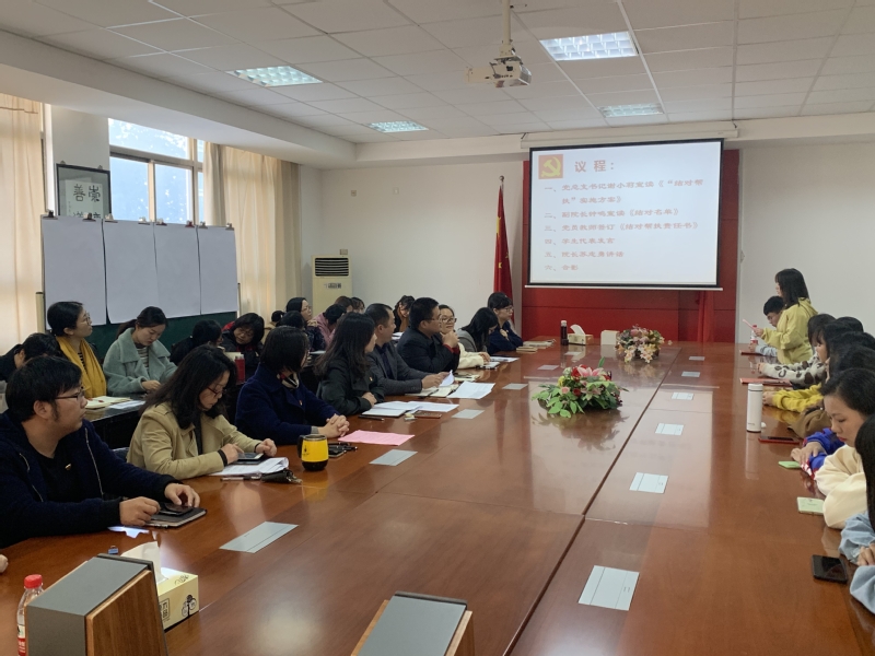 商学院党总支书记谢小莉宣读了《商学院党总支“结对帮扶”实施方案》,副院长钟鸣宣读了《结对名单》,13名党员教师签订了《结对帮扶责任书》,并向党组织郑重递交。根据《实施方案》, 2位党员老师与1名学生结对,从专业学习和英语学习上给予学生帮助和支持。会计1912班的刘丝同学代表接受帮扶的学生做发言,她对学院老师给予的关心表达了深深的感激之情,表示将不辜负老师们的期望,勤奋学习,回报母校。