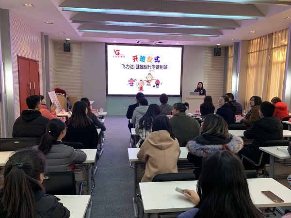 江苏飞力达股份有限公司太仓区人力资源与行政管理中心总经理张洁、海运事业部 副总经理唐华、人力资源与行政管理助理总经理赵小卫、人才发展部经理何君丽、招聘经理阮梦婷;商学院副院长钟鸣、办公室主任陆梦朕、报关专业全体教师,以及商学院2019级学徒制班全体学生出席开班典礼。