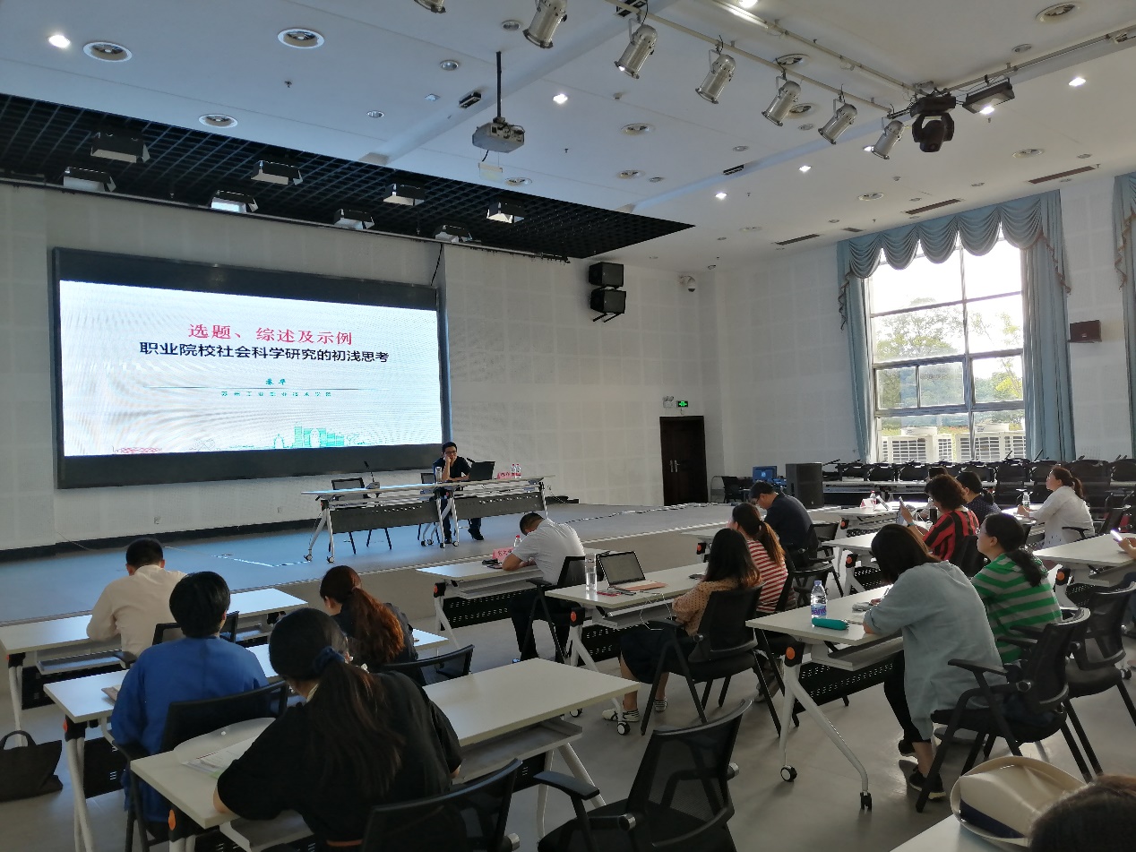 9月25日,在学院科技处的大力支持下,商学院邀请苏州工业职业技术学院经贸管理系主任苏华教授来校,为商学院全体教师开展《选题、综述及示例——职业院校社会科学研究》专题讲座。