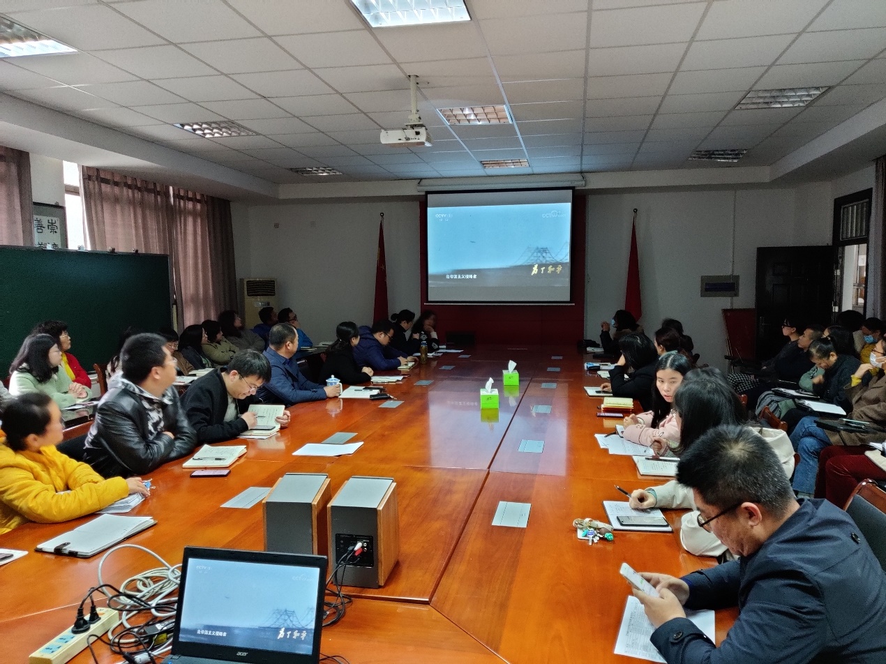 1124日下午,商学院召开本学期第六次政治理论学习会,本次学习的主要内容是观看系列纪录片《为了和平》第一集《正义担当》,全院老师们重温了伟大的抗美援朝战争的时代背景,深深地为革命先烈保家卫国的精神所震撼。