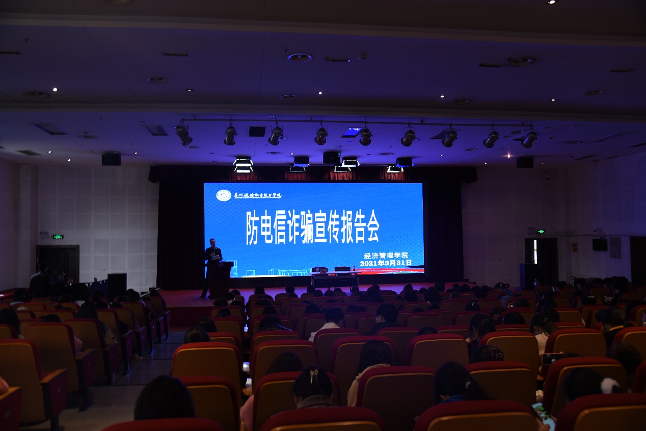 随着互联网、电信业的不断发展,近年来利用电话、短信、网络等方式进行诈骗的行为十分猖獗。近日,经济管理学院(筹)邀请太仓市科教新城派出所所长郭晓冬,为在校师生开展了一场别开生面的防电信诈骗宣传报告会。