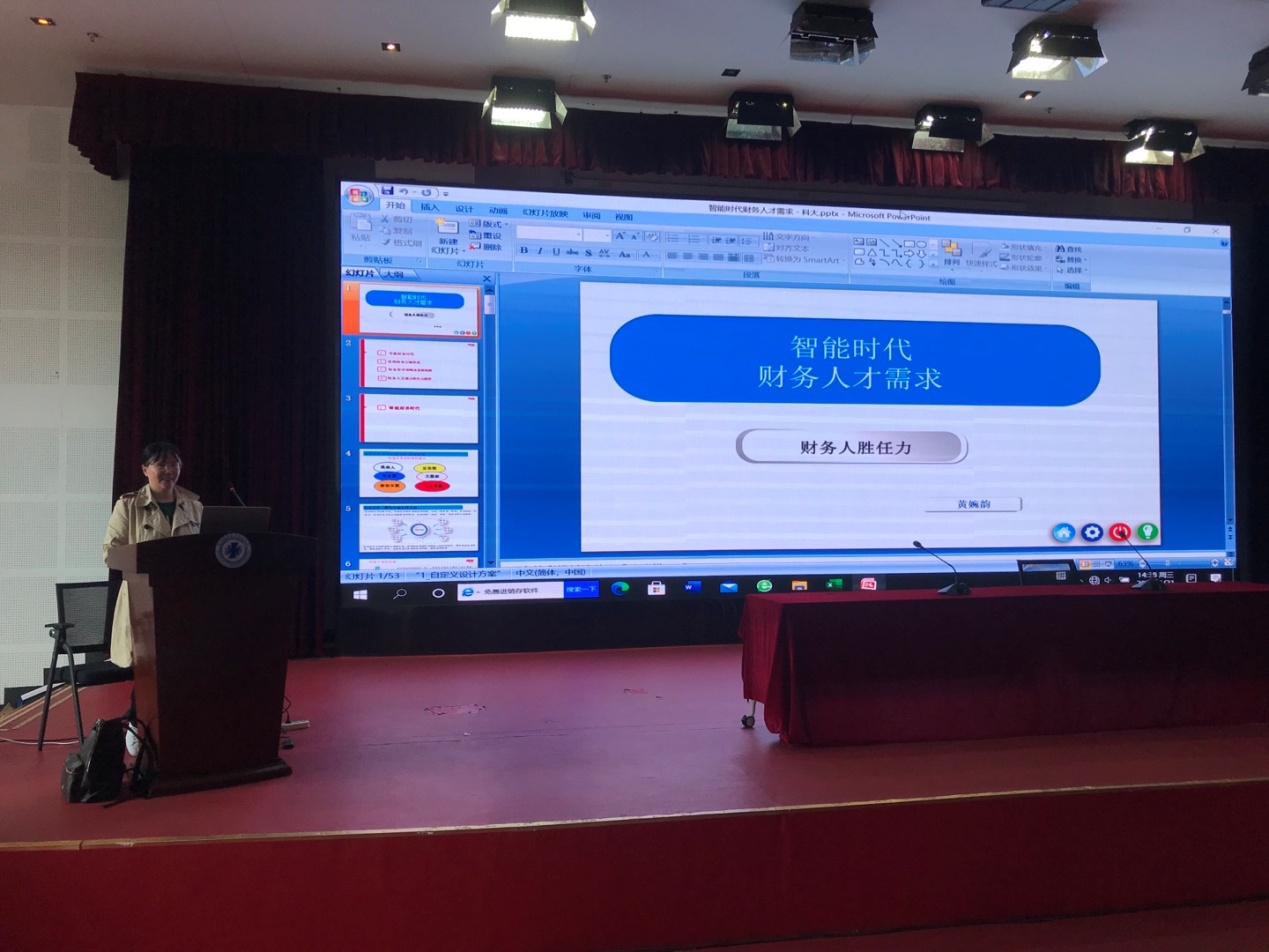 讲座围绕“智能时代财务人才需求”主题展开,专家从自身的财务实践工作经验出发,阐述自己带领的团队如何设计财务流程模型来解决智能时代大环境下公司的财务困境;在智能时代财务环境下,财务人员应具备的能力等。