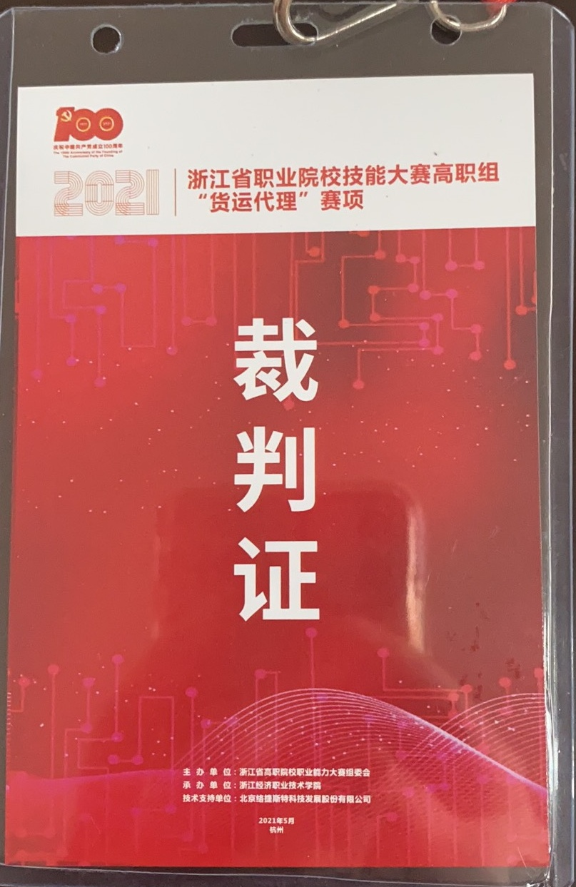 经济管理学院(筹)陶春柳老师受浙江省教育厅邀请,担任了赛项裁判,并与广西职业技术学院、南京交通职业技术学院、货代公司负责人等7名专家组成了大赛裁判团。