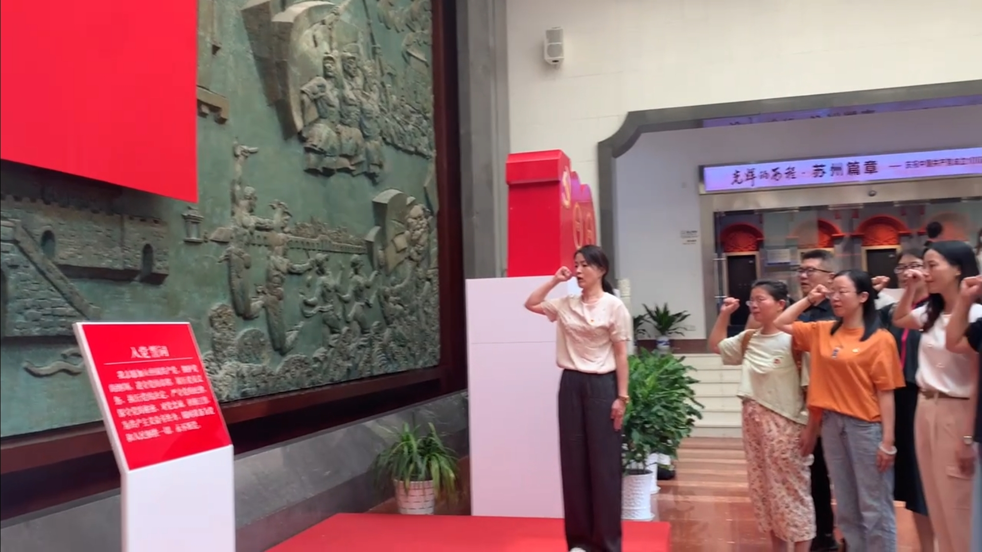 作为经济管理学院(筹)党总支5+X主题党日活动的重要组成部分,28名同志首先参观了苏州革命博物馆。苏州是一方具有光荣革命传统的热土,在博物馆中,党员老师们看到了珍贵的革命照片、革命文物和革命史料,让大家重温了革命年代苏州地区的沧桑岁月,激起了大家对革命先烈的深切怀念和无限崇敬之情;在博物馆大厅入党誓词面前,教师党员紧握右拳,高声诵念入党诗词,再一次坚定了党员的初心和使命。