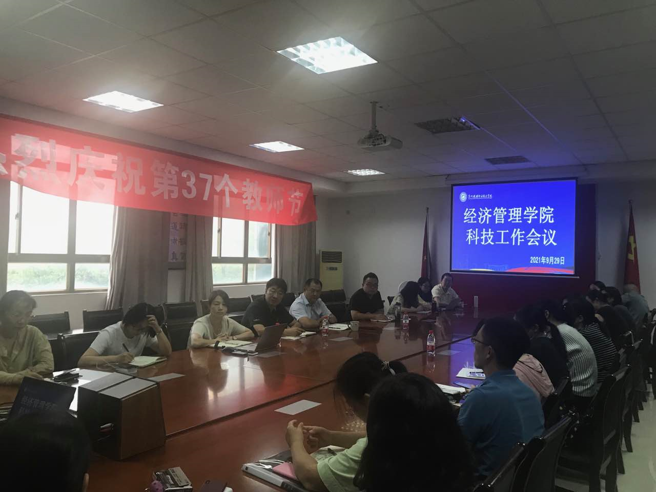 9月29日下午,经济管理学院(筹)召开科技工作会议,对2021年前三年度科技工作进行总结,对第四季度科技工作进行研讨。樊奇副院长主持会议。