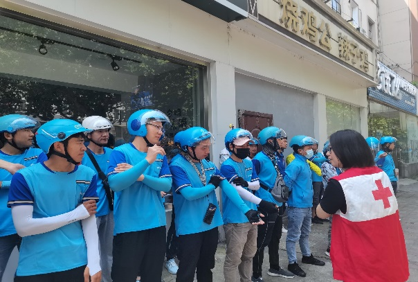 烈日炎炎,骄阳似火,快递小哥无疑是维系城市运转“最忙碌的人”, 他们就像一只只勤劳的“小蜜蜂”, 几乎24小时穿梭于城市的大街小巷,大暑天坚守一线劳累奔波、大汗淋漓,“配送”幸福和希望。近日苏州健雄职业技术学院经济管理学院党总支组织师生化身急救培训员,为苏州地区的各类快递站点普及应急救护知识,为小哥们送上贴心的夏日“安全大礼包”。目前太仓市共有外卖快递从业人员将近2000名,根据团队调研,其中70%以上的“小哥”在日常工作中会遭遇外伤出血、中暑、关节扭伤等意外伤害,有超过60%的“小哥”在工作中遇到过他人车祸、晕倒等突发事件。自2021年4月以来,苏州健雄职业技术学院经济管理学院党总支结合党史学习教育开展了“‘疫’路平安,‘救’在身边——学党史办实事·助小哥保平安”主题党日活动,面向快递小哥群体开展系统的应急救护知识和技能培训。