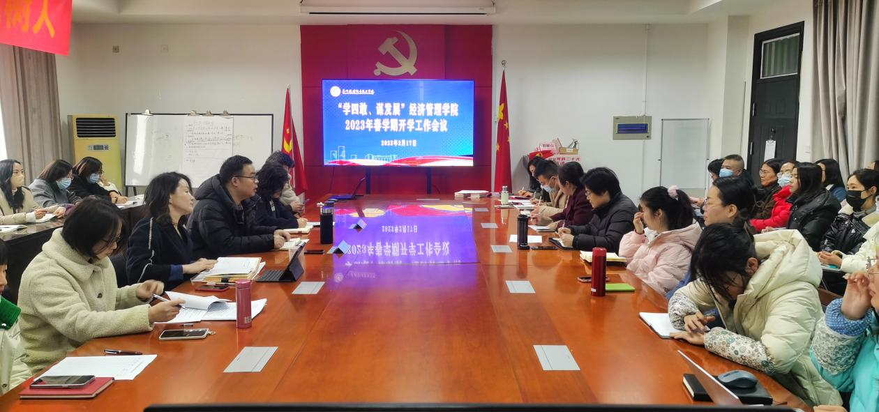 新学期,新气象。2月17日上午,经济管理学院在C3-202会议室召开2023年春学期开学工作会议。会议由院长樊奇主持,全体筹建组成员、全体教职工参加会议。