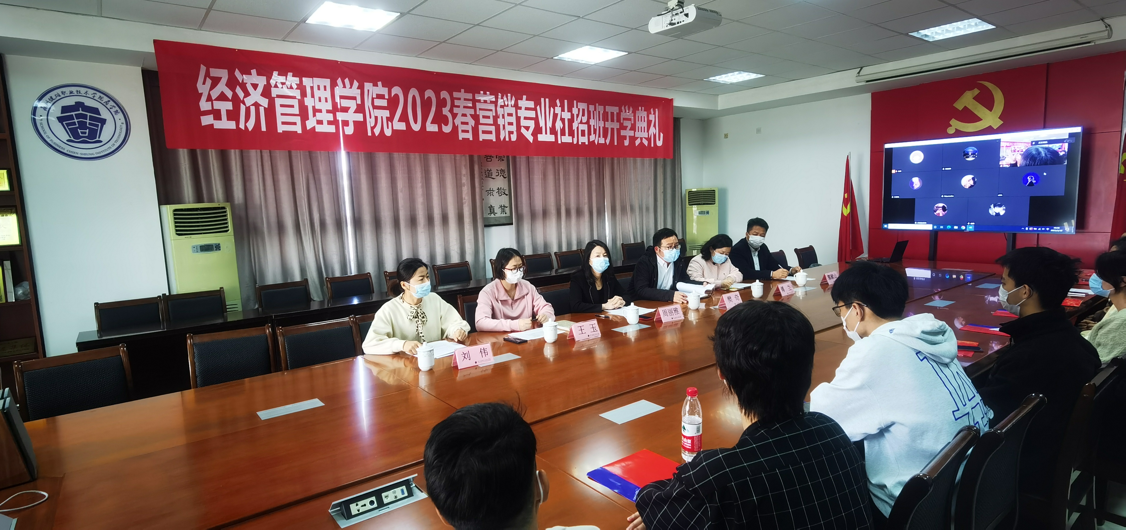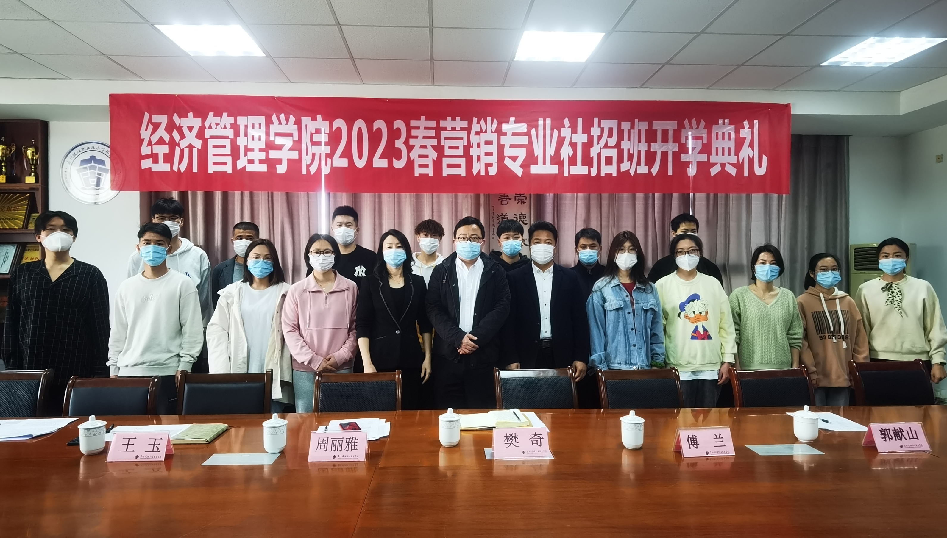 2023年3月10日上午,经济管理学院召开2023春营销社招班(2711)新生班开学典礼,院长樊奇、筹建组副组长傅兰、筹建组副组长王玉、市场营销教研室主任郭献山、班主任刘伟及营销社招2271班全体学生出席。典礼由党总支副书记周丽雅主持。