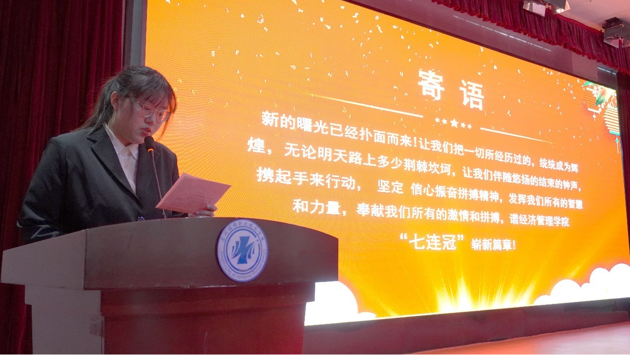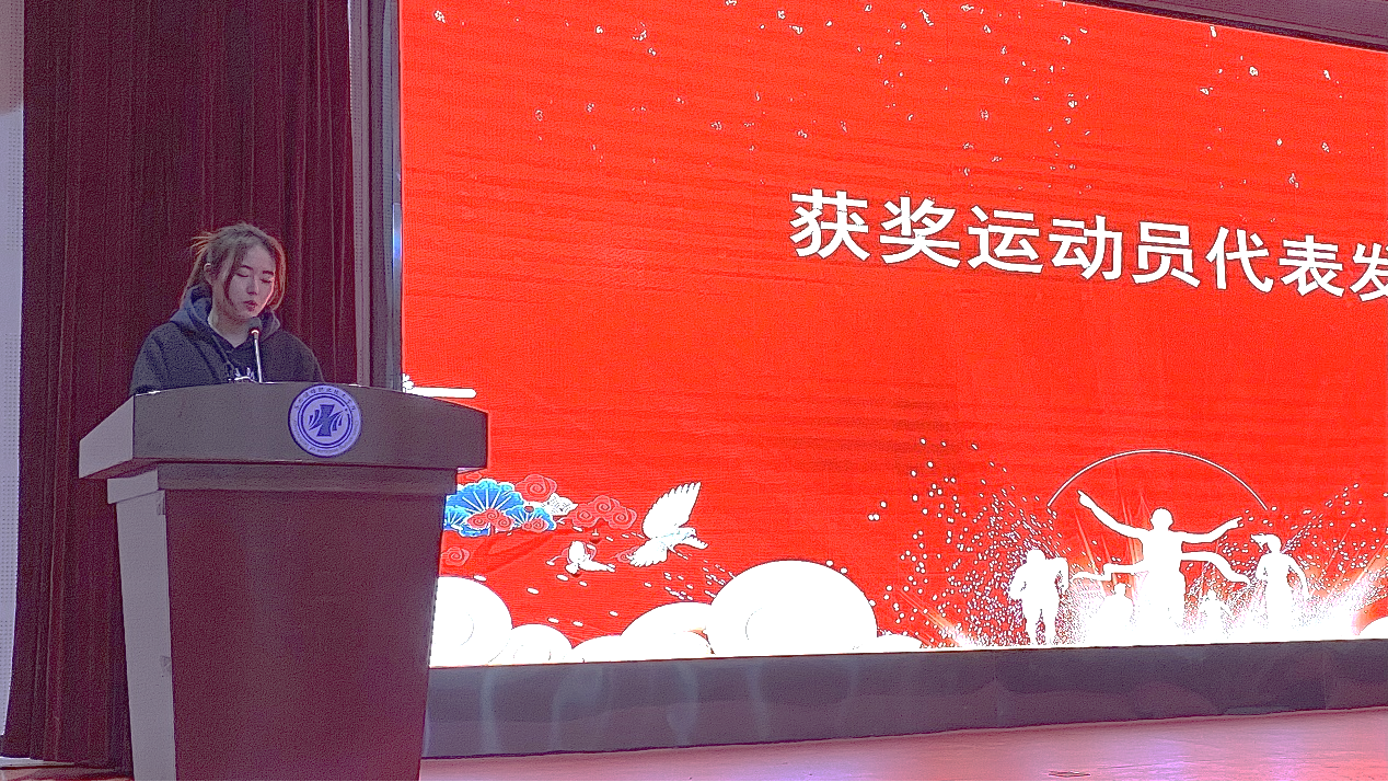 学生会副主席王欣语作为学生代表发言,她向一直以来表示关心和支持学生工作的各位老师表示衷心的感谢,详细总结了自身的学习情况、工作成果和问题不足,鼓励大家要以此为契机,总结过往,见贤思齐,与优秀为伴,与榜样同行,迎接新的挑战,开启新的征程。