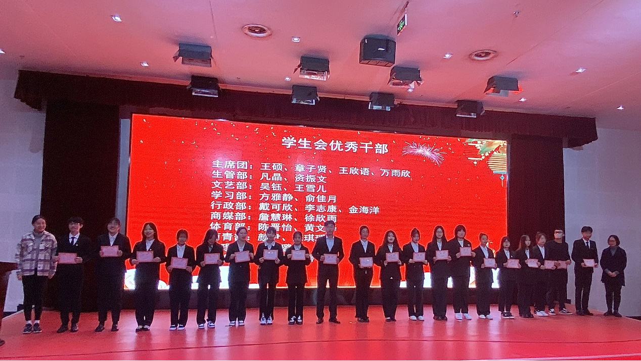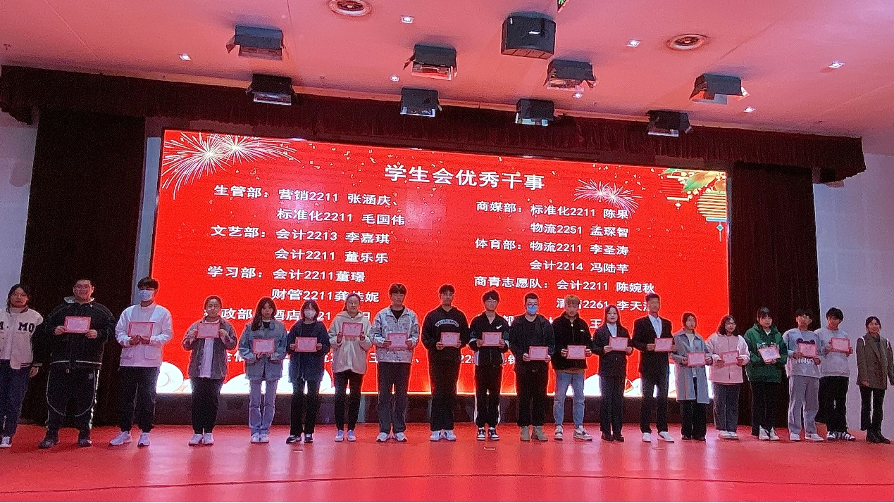 大会表彰了2022-2023学年第一学期4个“学生会优秀部门”、17名“优秀学生干部”、15名“优秀学生会干事”、23名“优秀班助”、42名“优秀运动员”。