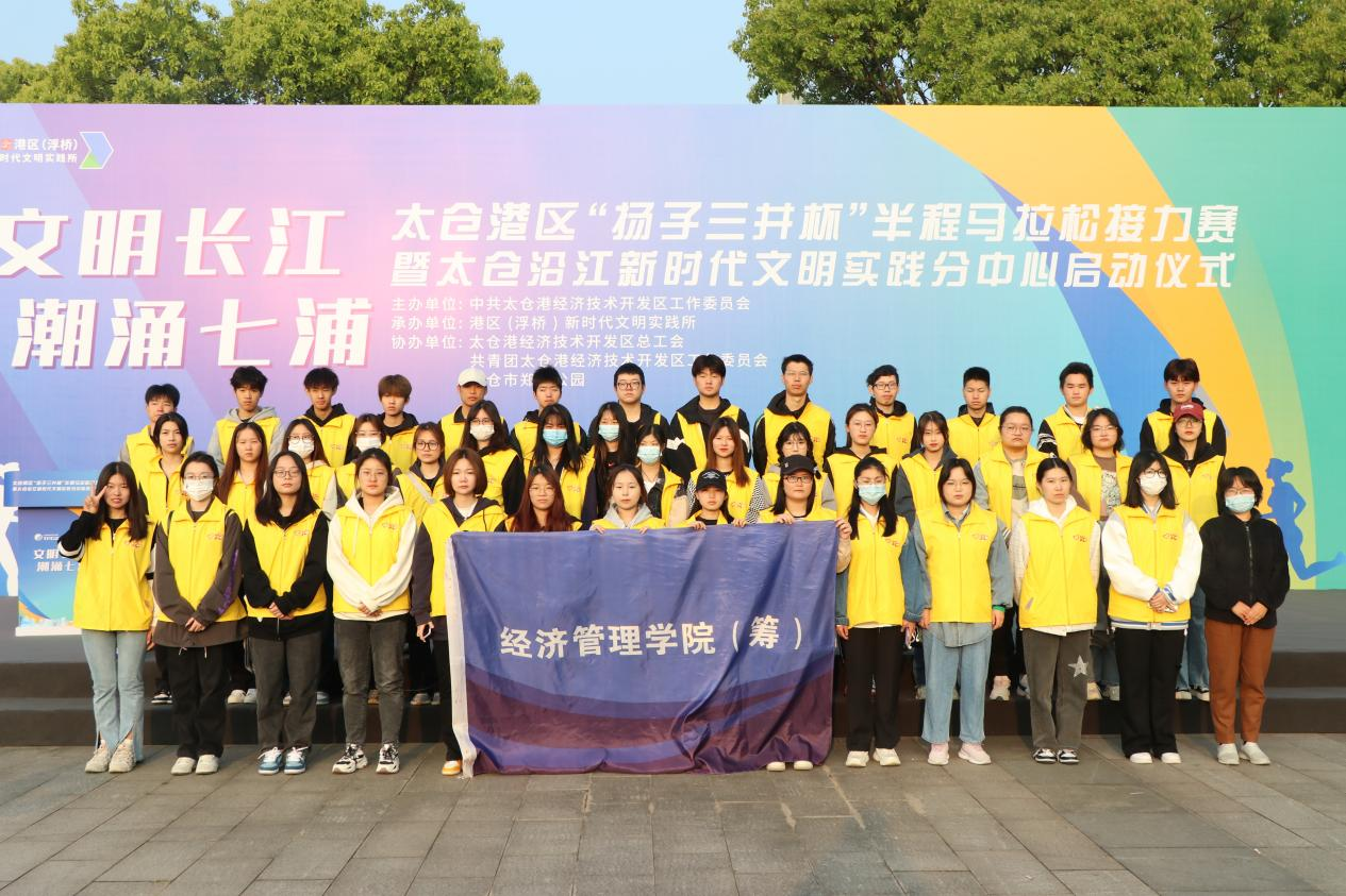 4月26日上午,“文明长江 潮涌七浦”太仓港区“扬子三井杯”半程马拉松接力赛暨太仓沿江新时代文明实践分中心启动仪式在郑和公园举行。本次赛事邀请来自港区各企事业单位近200名职工一起参与,苏州健雄职业技术学院经济管理学院商青志愿者团队42名同学作为赛道补给志愿者、赛道检查及沿途志愿者参与此次马拉松志愿服务工作。