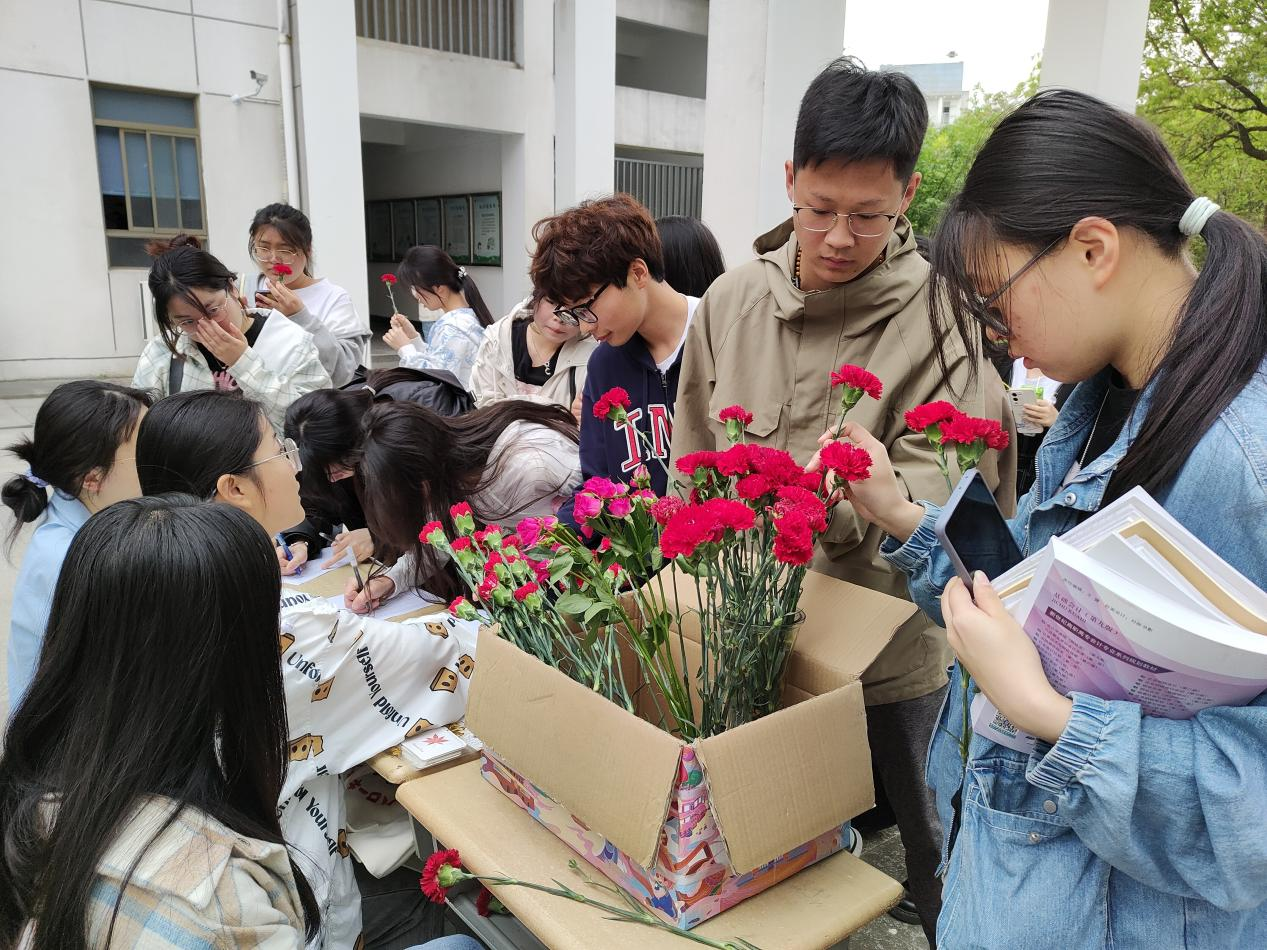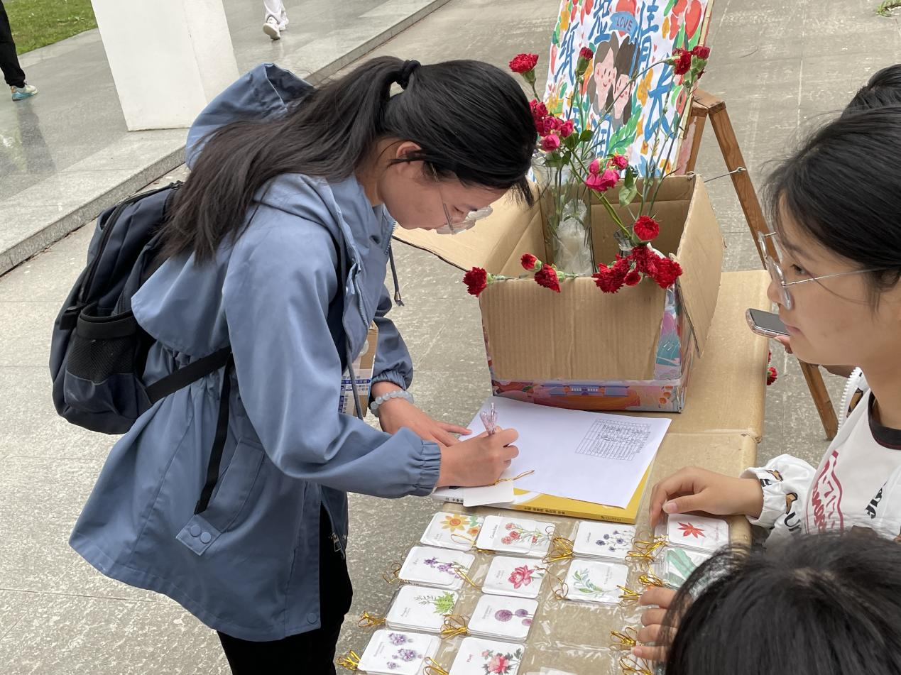 活动现场,同学们在明信片上写下对家人、朋友们的心里话,将感恩、感谢之情大胆表达出来,传递爱意。此次活动还为同学们精心准备了康乃馨,参与的同学都能领取一支送给特别的她!