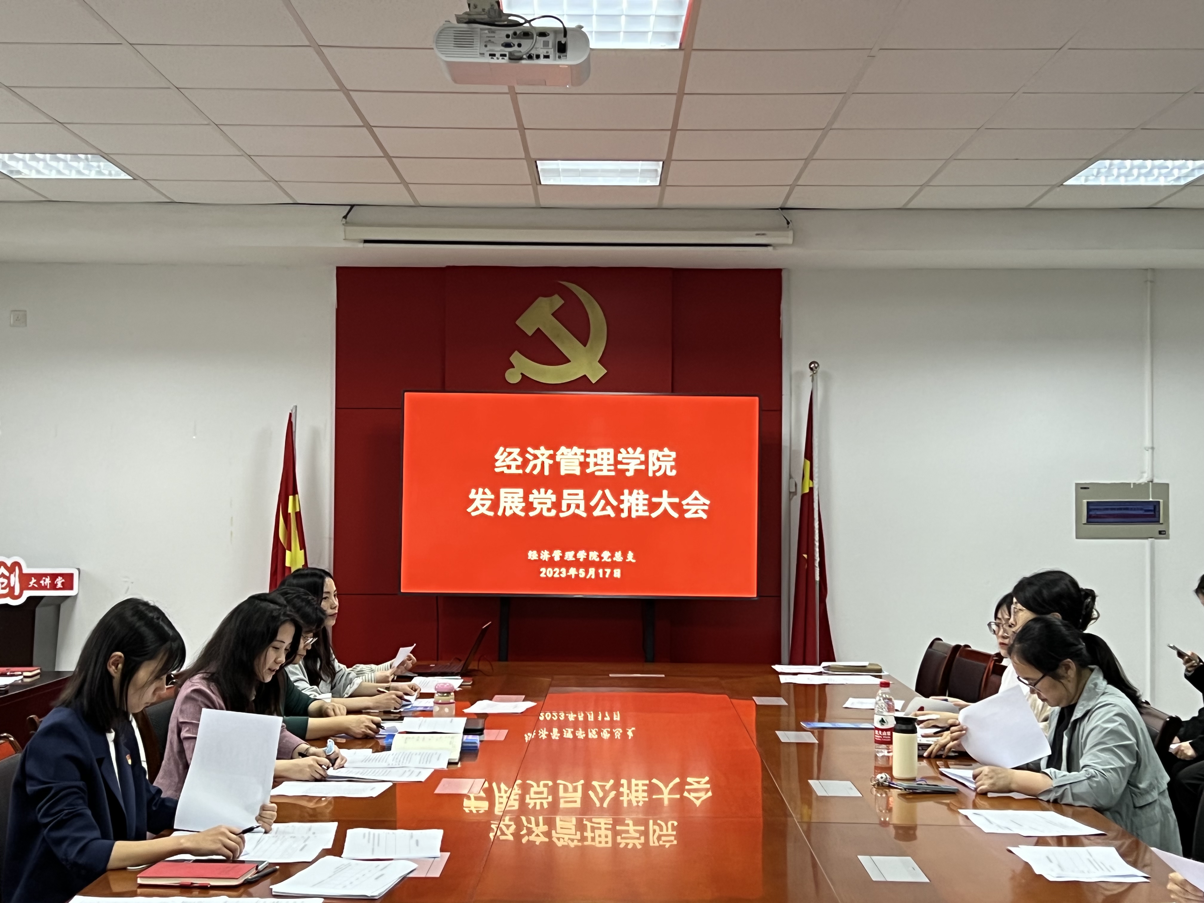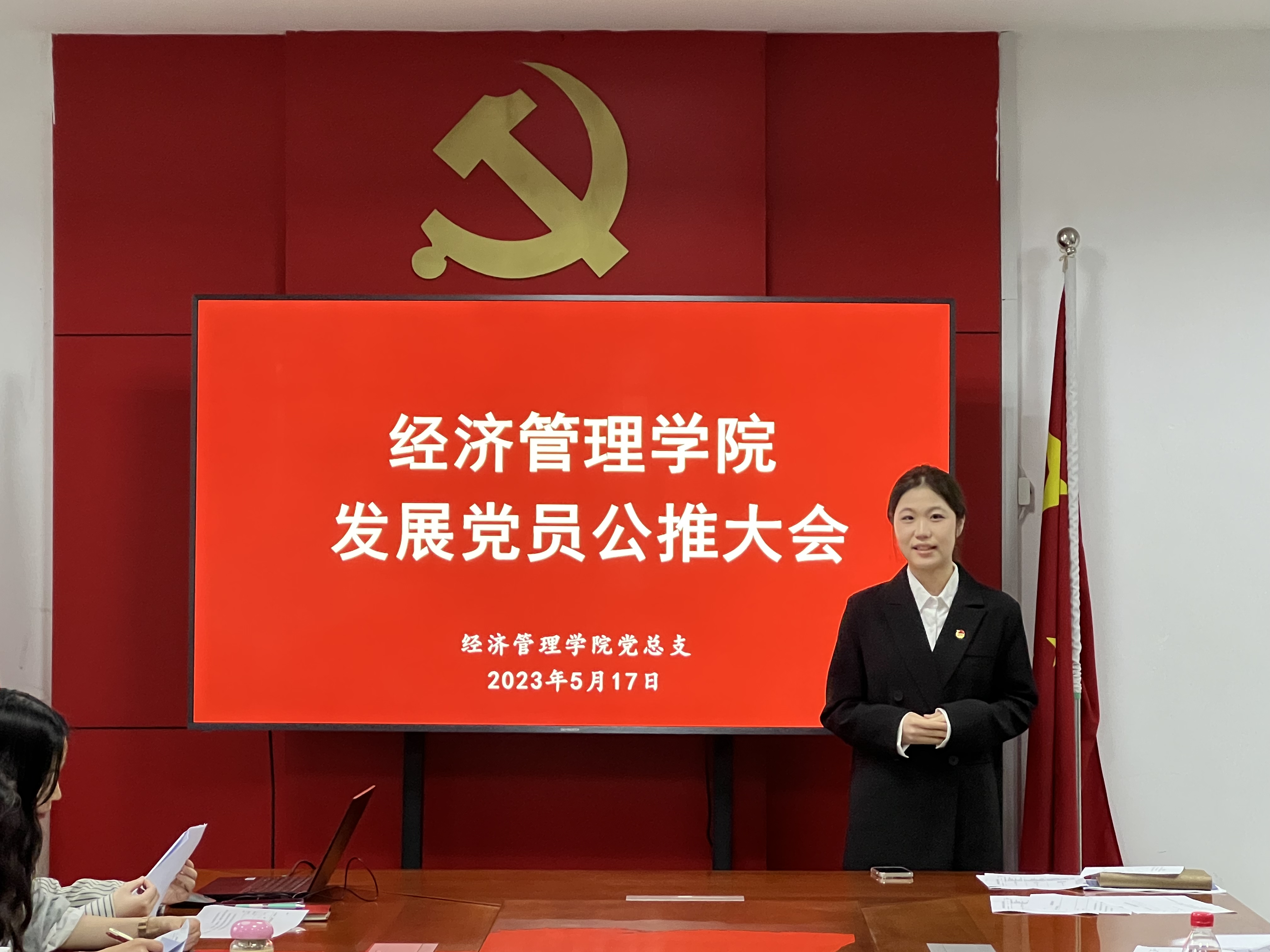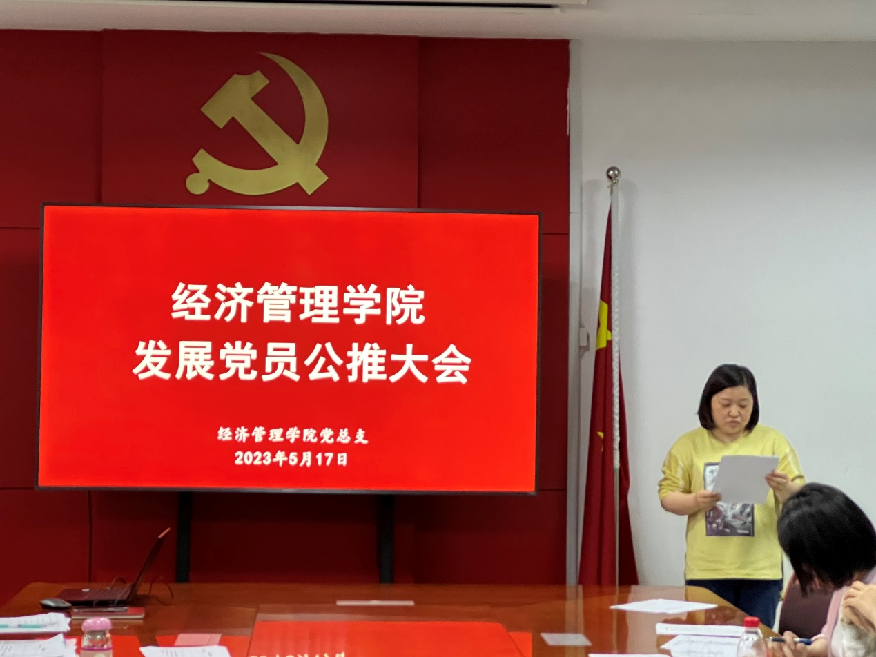 2023年5月17日下午,经济管理学院党总支在C3-202会议室召开党员发展对象公推大会,全体党员教师、21名公推对象候选人参加了本次会议,会议由党总支副书记沈晓婷主持。