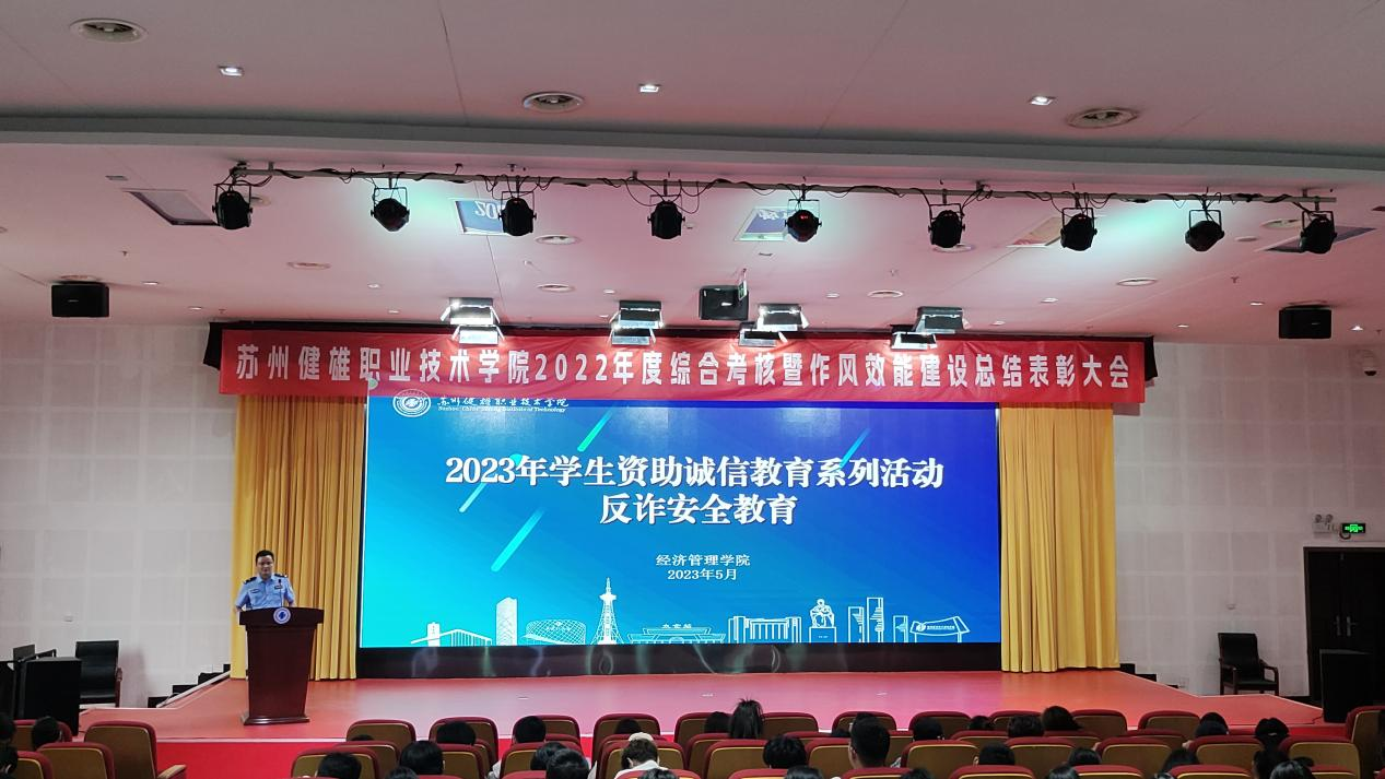 2023年5月24日下午,经济管理学院在图书馆报告厅开展诚信教育防诈骗讲座。太仓市公安局科教新城派出所副所长陈锋进行宣讲,经济管理学院辅导员顾子琪主持,经济管理学院党总支副书记、全体辅导员和350多名学生参加。