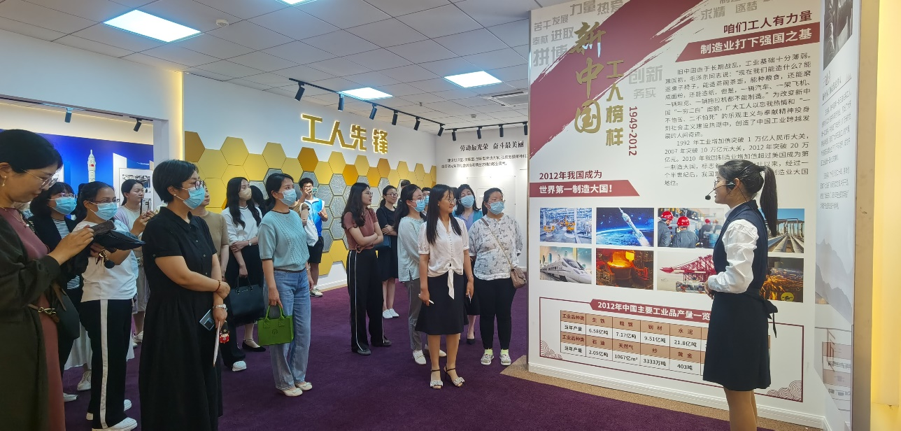 2023年6月7日,经济管理学院全体教职工赴工人先锋馆开展政治理论学习,全体教师在学生志愿讲解员的带领下,依次参观了“新中国工人榜样”“新时代大国工匠”展区、实物陈列区以及“工匠微学堂”研学区。