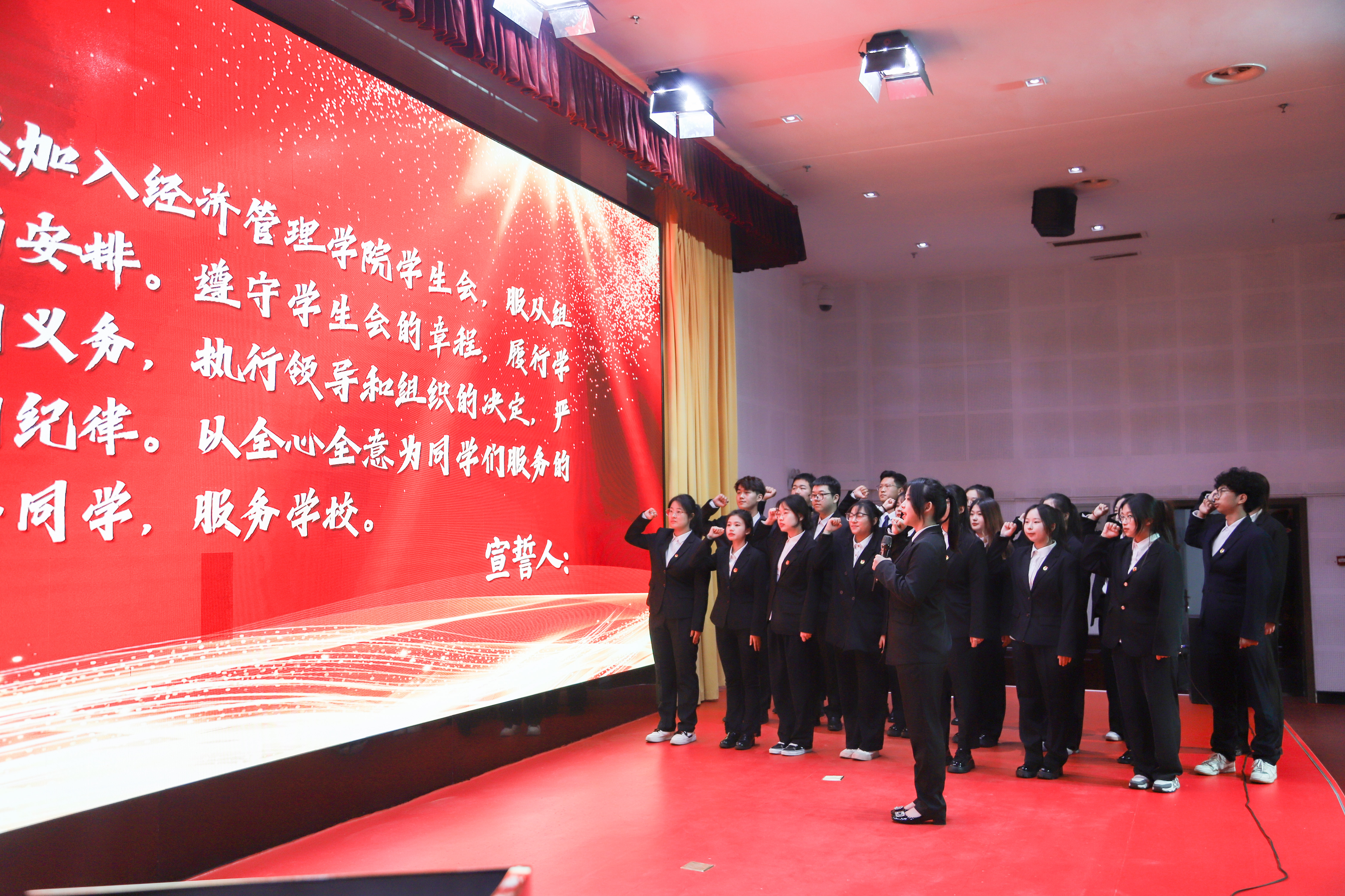 经济管理学院党总支副书记沈晓婷高度肯定了第五届学生会的出色表现,对学生会在学院事务管理中发挥的桥梁纽带作用表示感谢,同时,她向全院青年学生提出三点希望:一是要强化使命担当,始终引导广大同学坚定理想信念。坚定不移地用党的创新理论成果武装头脑、指导实践、推动工作;二是要勇于自我革命,纵深推进学联学生会组织改革,努力建设一支守纪律、讲规矩、重品行的学生会工作人员队伍;三是要牢记服务同学宗旨,促进广大同学全面发展。把服务同学作为根本,提升服务同学的能力和品质,发挥好学生会组织桥梁纽带作用。
