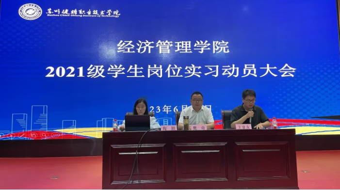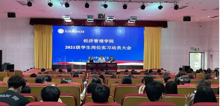 6月16日下午,经济管理学院在图书馆报告厅举行2021级岗位实习动员大会。经济管理学院院长樊奇、辅导员王富友、教学秘书陶颖、专业负责人、班主任、实习指导老师以及全体2021级学生参加会议。