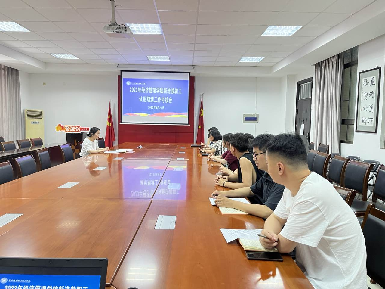 2023年6月21日下午,经济管理学院在C3-202会议室开展新进教职工试用期满工作考核会,本次会议由党总支副书记沈晓婷主持,院长樊奇、教师代表、辅导员代表及学生代表参加了此次会议。