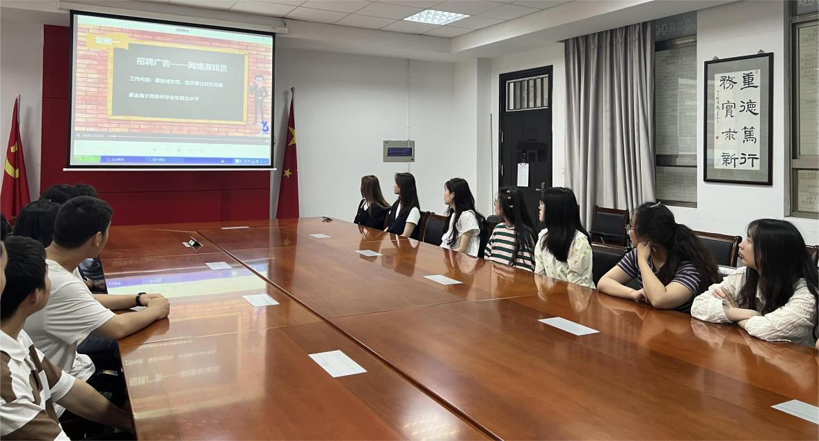 临近暑假,不仅是2023届毕业生要面临求职就业,其他年级的在读学生,也有利用暑假兼职提升自己实践能力、帮助家庭减轻经济负担的想法和意愿。学院同时组织了外省市少数民族学生和受资助学生代表,共同学习,让更多的同学们牢固树立安全就业意识,提升自我保护能力。
