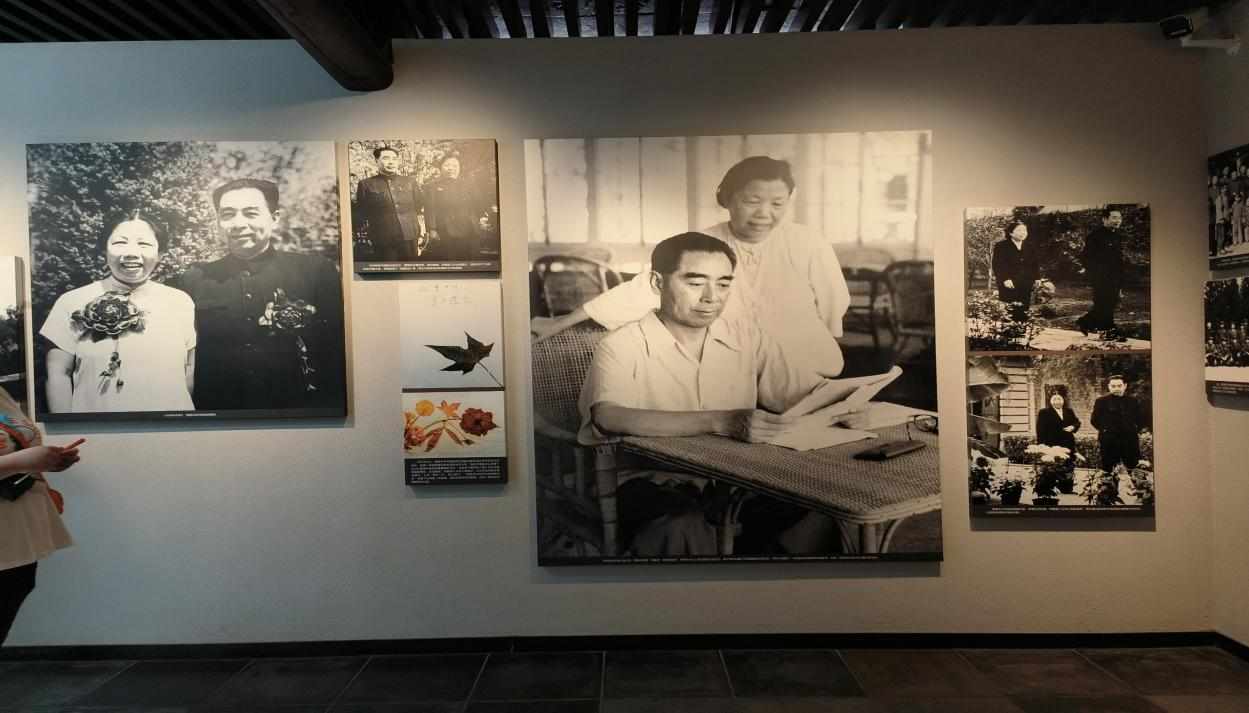 旷世爱情,相濡以沫。故居内设有周恩来邓颖超夫妇的图片展,展览的“家庭”部分再现了周恩来、邓颖超夫妇相濡以沫、悲喜分担的半世纪风雨历程。黑白色调为主的照片书信中,体现了他们之间的伉俪情深,一组绚丽的花叶吸引着展厅观众的目光,海棠花开无香,家风润物无声。展览在周恩来、邓颖超共同喜爱的海棠花影中结束。