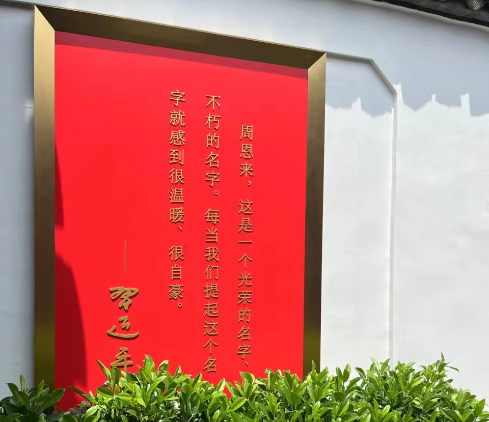 丰功伟业千秋在,笑貌音容万载留。总理铿锵有力的“愿相会于中华腾飞世界时”被刻在石头上,让每一位参观者热血澎湃,想起正是因为有了革命先辈的浴血奋斗,才有了我们今天已腾飞于世界的中华。周恩来总理一生矢志不渝追求真理,为党和人民事业鞠躬尽瘁死而后已,为我们树立了光辉典范,影响和教育了一代又一代的新时代青年人。