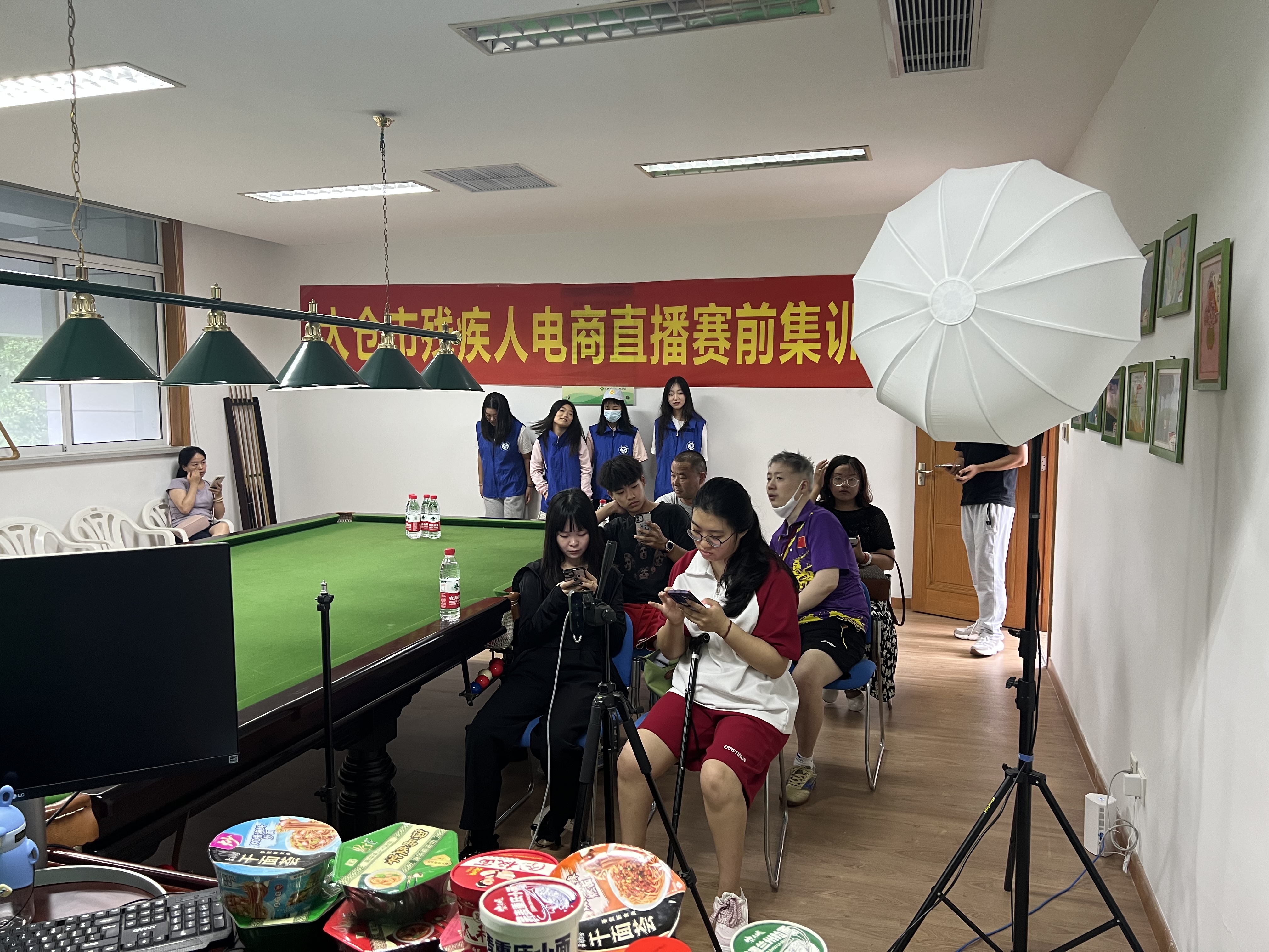 当今社会,互联网设备和应用变得十分多样化,数字化正日益改变着人们的学习、工作和生活方式。结合前期调研中残疾人的基本情况及就业现状,许多残疾人仍然从事着出卖体力劳动的工作,对于数字化就业等新兴就业形式和岗位了解甚少。学生团队在指导老师的帮助下,积极推动乡村残疾人数字化就业培训。2023年8月,太仓市残疾人联合会组织开展残疾人直播培训,学生团队积极配合,在培训现场帮助残疾人对直播带货话术、技巧等方面进行深入理解。