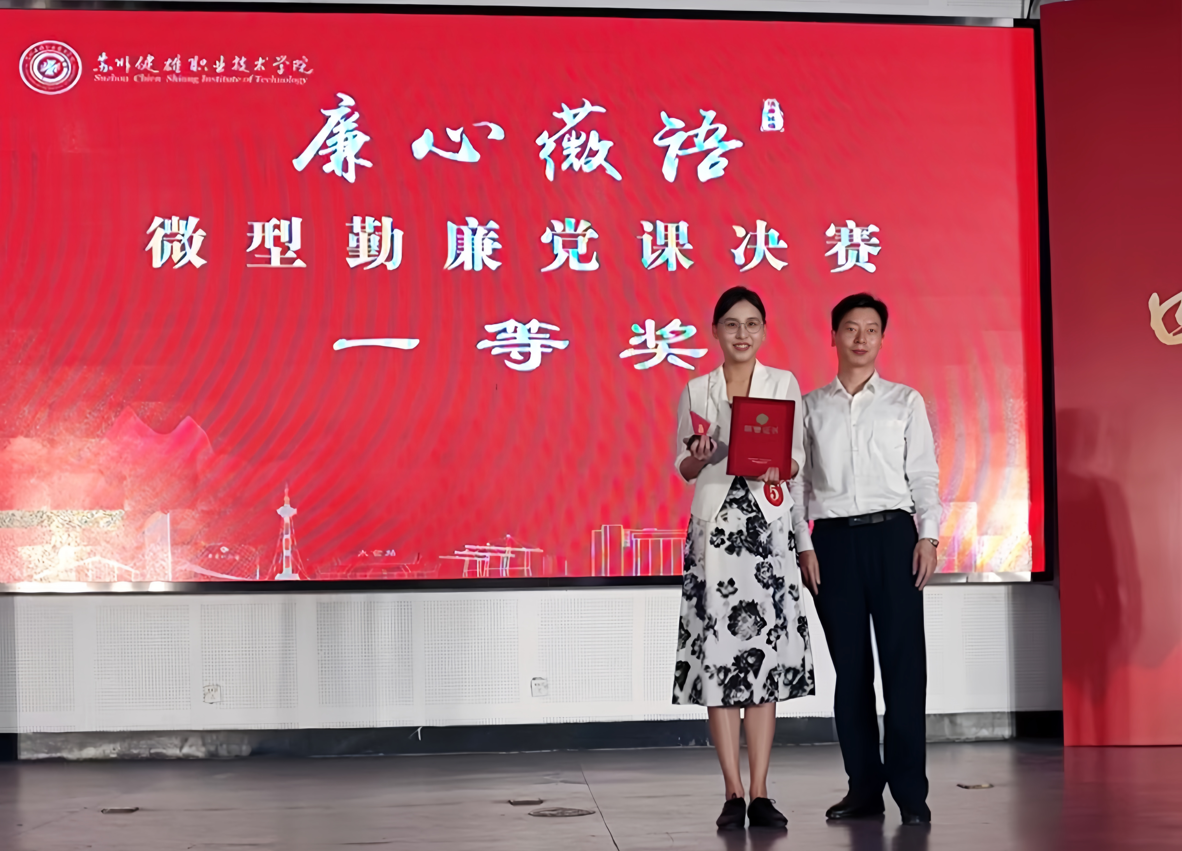 为进一步引导广大党员教师坚定理想信念,营造廉洁从教的教风,10月18日下午,由中共苏州健雄职业技术学院纪律检查委员举办的“廉心薇语”微型勤廉党课决赛在学院图书馆多功能厅隆重举行。经济管理学院顾宇婷老师以《廉润初心正清风 德铸师魂育工匠》为题,荣获本次“廉心薇语”微型勤廉党课决赛一等奖。