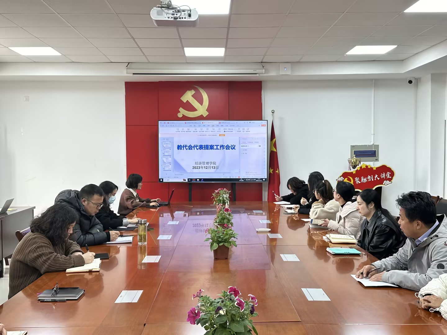 教代会提案是教职工参与学校民主管理、民主监督的重要形式,是学校工作决策民主化、科学化的重要渠道,也是教代会代表履行职责、行使民主权利的一项重要内容。为提高教代会代表提案质量,保证提案的严肃性、科学性、可行性,经济管理学院于2023年12月13日下午在C3-202会议室召开经济管理学院教代会代表提案工作会议。