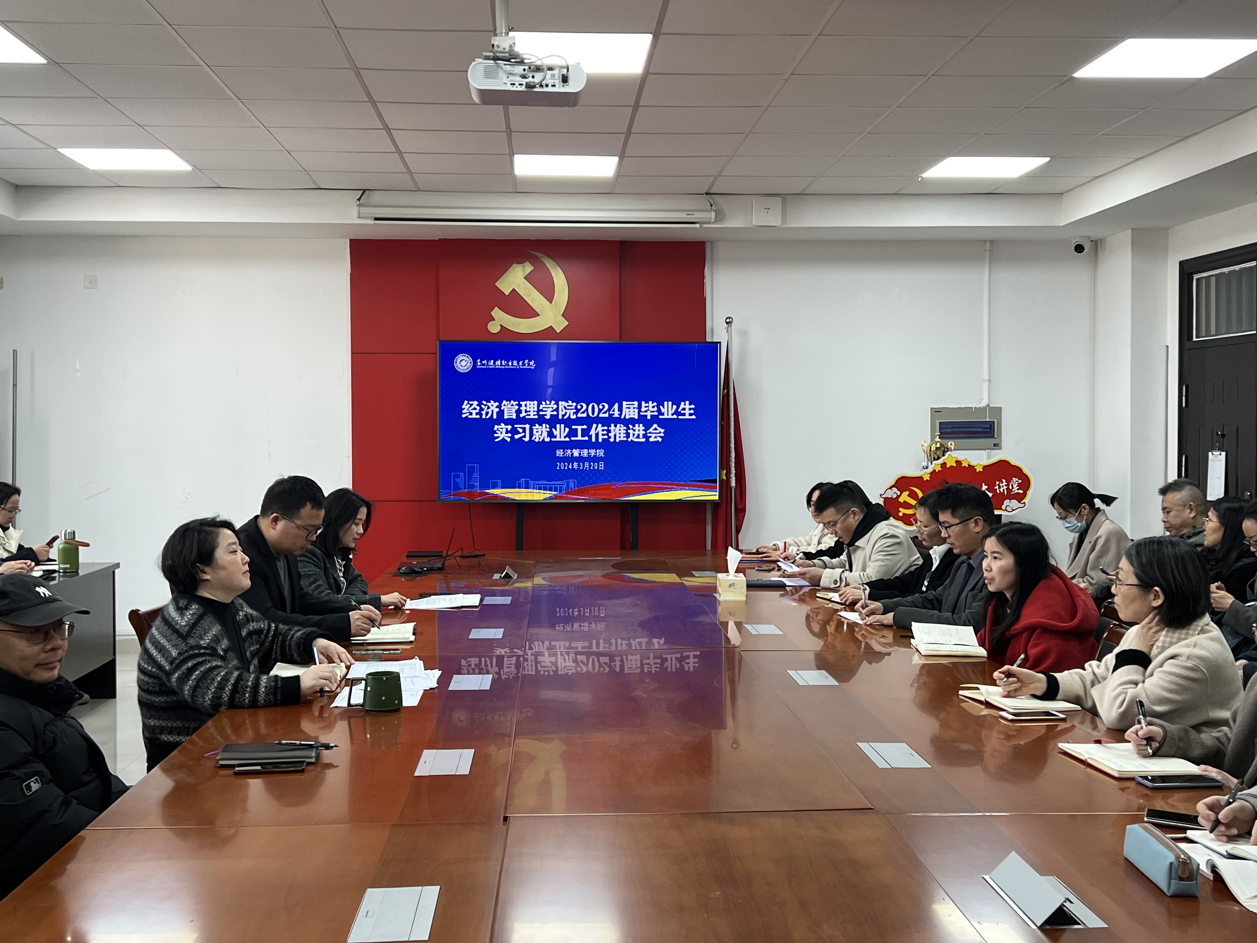 为全面落实学校关于2024届毕业生实习和就业工作的相关要求,2024年3月20日下午,经济管理学院在学院会议室召开2024届毕业生实习就业工作推进会。会议由学院党总支副书记沈晓婷主持,经济管理学院领导班子、全体教职工、2021级班主任、实习指导老师参会。