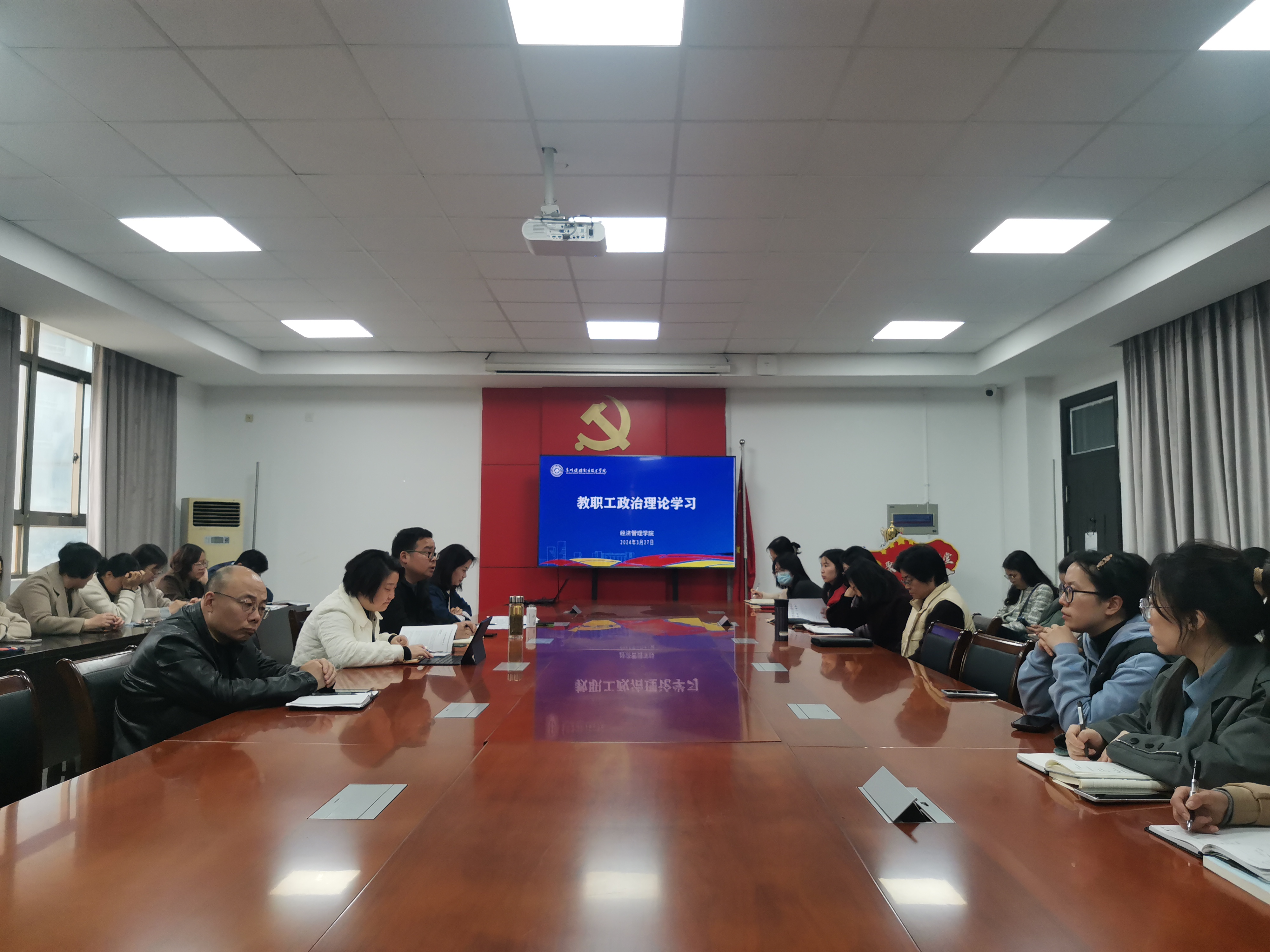 为进一步提升学院教职工思想政治素养和理论学习水平,推动教职工政治理论学习常态化,3月27日,经济管理学院在学院会议室开展教职工政治理论学习。会议由党总支副书记沈晓婷主持,全体教职工参加。