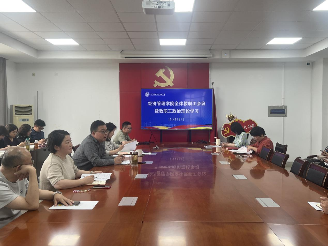 2024年6月5日下午,经济管理学院在学院会议室召开全体教职工会议暨教职工政治理论学习活动。经济管理学院全体教职工参加。