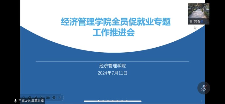 为深入落实党中央、国务院“稳就业”“保就业”决策部署,深化就业分类指导和个性帮扶,确保 2024 届毕业生更高质量充分就业。7 月 11 日上午,我院召开 “经济管理学院全员促就业专题工作推进会”,会议全面落实学校决策部署和就业工作有关要求,进一步分析形势、明确任务,部署做好下一阶段就业工作。会议由学院院长樊奇主持,学院领导班子成员、全体教职工参加会议。