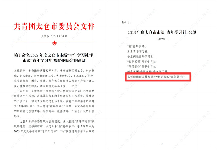 近日,共青团太仓市委员会发布《关于命名2023年度太仓市市级“青年学习社”和市级“青年学习社”线路的决定的通知》,经济管理学院“共同富裕”青年学习社成功荣获2023年度太仓市市级“青年学习社”称号。这一荣誉不仅是对学习社工作的充分肯定,更是对学院在青年思想引领和共同富裕理念传播方面所做努力的认可。