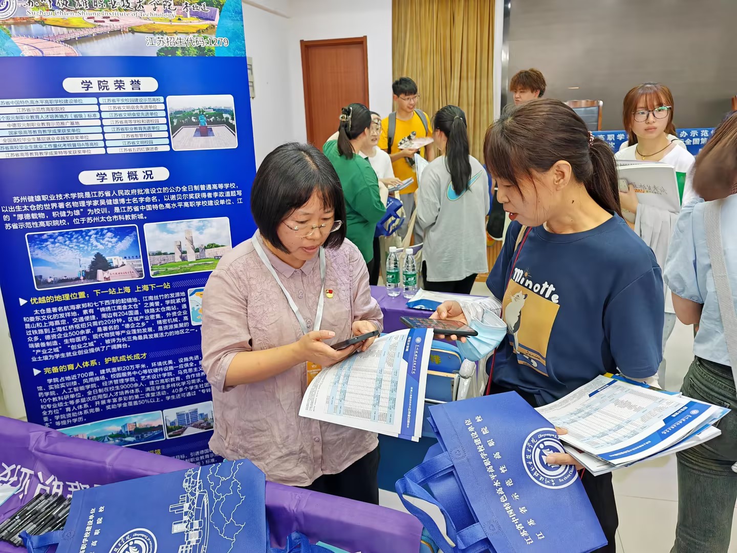 “把学校讲靓、把政策讲透、把愿景讲明”,在现场招生期间,我院招生组以多种形式开展招生宣传工作。工作中,招生组立足太仓市区域产业密集、外资企业众多,紧邻昆山和上海嘉定便捷交通的多重区位优势,详细介绍学院的各个专业、教学资源、校园设施等,帮助学生和家长全面了解学院的优势和特色,并结合考生实际,给出一对一的指导方案。同时,招生组积极做好与考生的电话联络工作,在整个招生期间,相关人员积极与重点考生进行沟通交流,了解其最新想法,一对一进行答疑解惑。