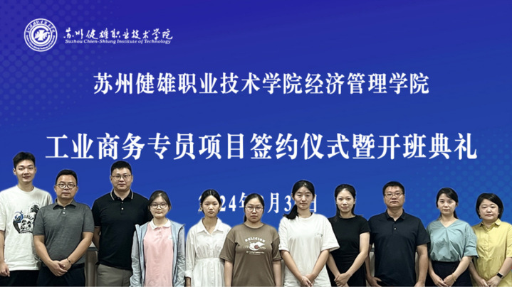 8月30日上午,苏州健雄职业技术学院工业商务专员项目签约仪式暨开班典礼在经济管理学院会议室举行,经济管理学院樊奇院长、沈晓婷书记、亿迈齿轮(太仓)有限公司马介宏等合作企业代表,学员及家长参加了本次活动,签约仪式由苏州健雄职业技术学院经济管理学院副院长傅兰主持。