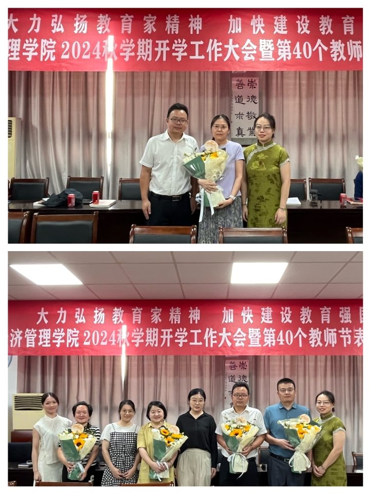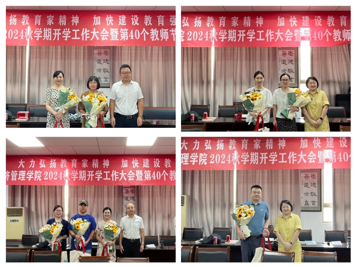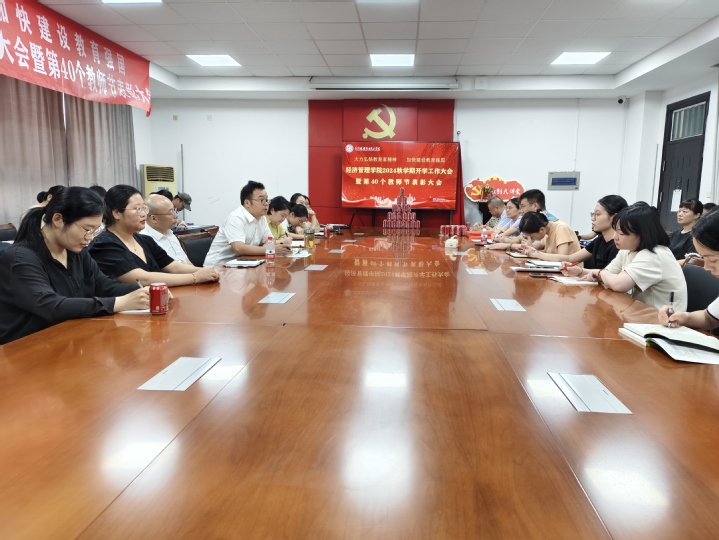 2024年9月6日上午,经济管理学院在C3-202会议室举办2024秋学期开学工作大会暨第40个教师节表彰大会,学院领导班子、全体教师参加,活动由顾宇婷老师主持。
