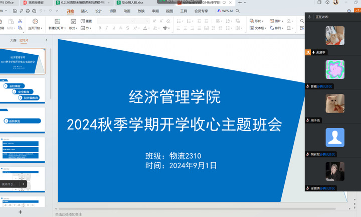 为扎实推进新学期学院学生工作开好局、起好步,进一步做好学生教育管理工作,扎实推进学风建设,引导全体学生收心入学,做好学业规划和奋斗目标,以最好的状态投入到新学期。近期,经济管理学院各班级班主任通过线上形式主持召开2024年秋季学期“收心教育”班会。