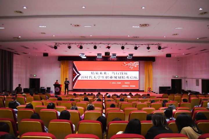 2024年9月27日晚,经济管理学院“紫薇”思政大讲坛暨2024级新生入学教育活动在图书馆报告厅举行。李志辉老师受邀为2024级全体新生,作题为《精策未来,笃行致远——新时代大学生职业规划精英启航》的专题讲座。