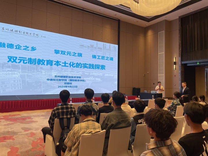 宣讲会上,中德双元制学院副院长郑爱权详细介绍了学校双元制教育本土化的实践探索,对双元制人才培养模式进行了精准解读。他指出,在双元制模式培养下,学生将打破传统教室的界限,直接步入合作企业的真实工作场景,通过亲身参与,深刻理解并掌握专业技能,实现知识与实践的双重深化,为学生未来的职业生涯奠定坚实基础。