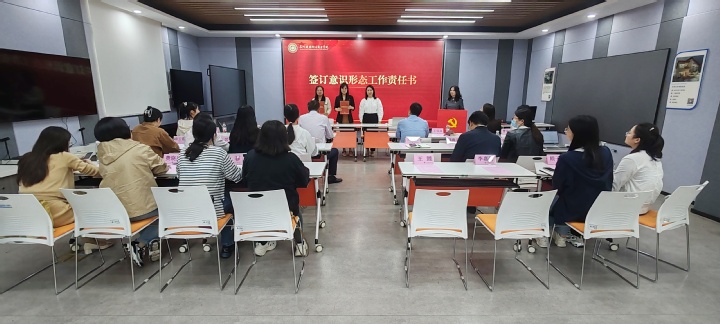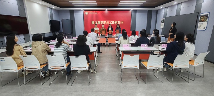 为全面落实意识形态工作责任制,明确意识形态工作责任和任务要求,牢牢掌握意识形态工作的领导权、主动权、话语权。接着由艺术设计学院党总支、经济管理学院党总支分别与支部书记签订意识形态工作责任书。