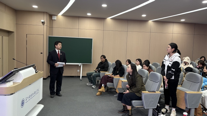 在互动环节中,张主任提出了“宪法是否能在裁判文书中直接引用”的问题。学生们基于个人的理解和观摩学习的经验,简述了自己的见解。张主任随后对学生们的意见进行了点评和补充,旨在深化大家对宪法在司法实践中应用原则的理解。
