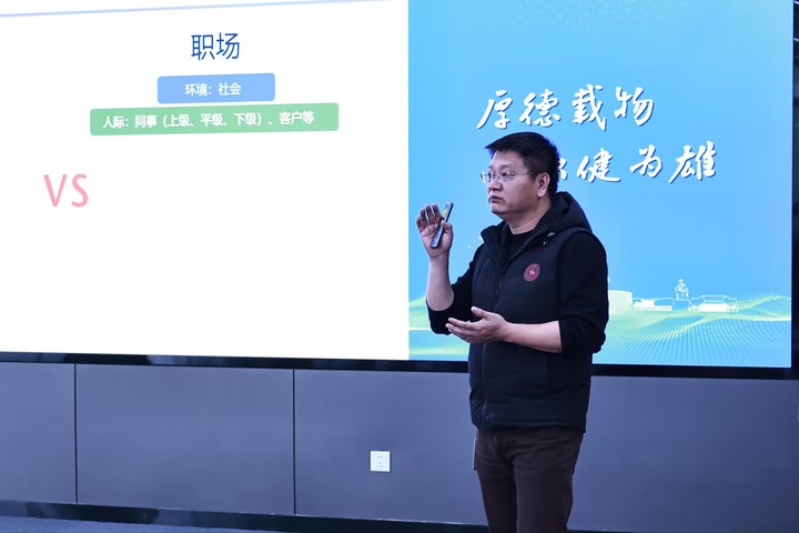 马经理在双元制教育领域有着丰富的实战经验,他以“走进职场有什么样的挑战”开场,抛出问题引发大家思考。随后他围绕“职场状态”“职场大忌”“职场五大通病”“职场压力”等四个学生关心的话题展开,现场的同学们积极互动、热烈讨论,对职场有了更加清晰的认识和更加深刻的理解。