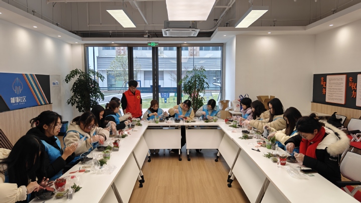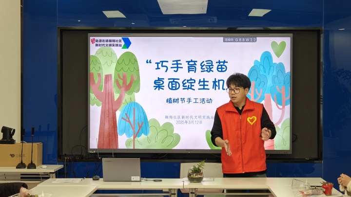 春意盎然时,植绿绘新篇。为贯彻落实国家双碳战略目标,深刻认识绿色植被对于地球生态环境的重要性,进一步增强本院师生的环保理念,共同迎接植树节的到来。3月5日,经济管理学院联合陆渡街道翱翔社区开展“巧手育绿苗,桌面绽生机”植树节桌面绿植活动,经济管理学院团总支书记顾子琪及14名学生代表参与本次活动。