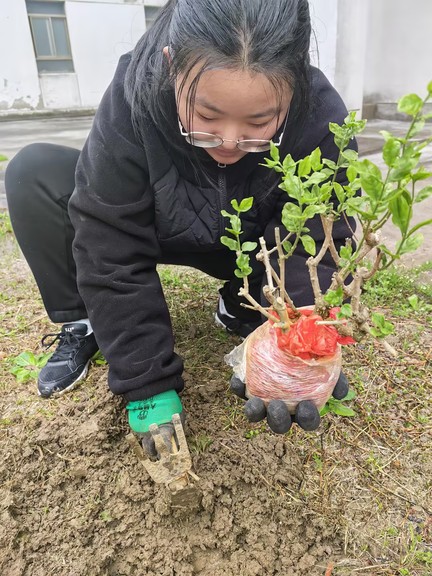 学生代表们也积极投入活动中,他们分成小组,互相协作,共同完成挖坑、植树、浇水等一系列任务。劳动中,同学们脸上绽放着灿烂的笑容,他们互相交流植树心得,分享着劳动带来的喜悦,整个现场洋溢着热烈而和谐的气氛。