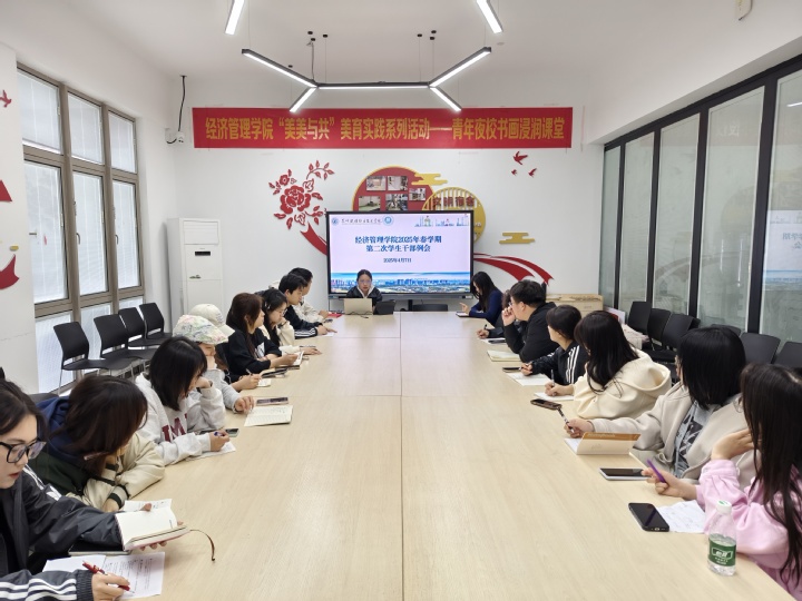 为强化学生干部队伍建设,4月7日下午,经济管理学院在紫薇社区召开本学期第二次全体学生干部会议。会议由学院团总支书记顾子琪主持,学院全体学生干部参加。
